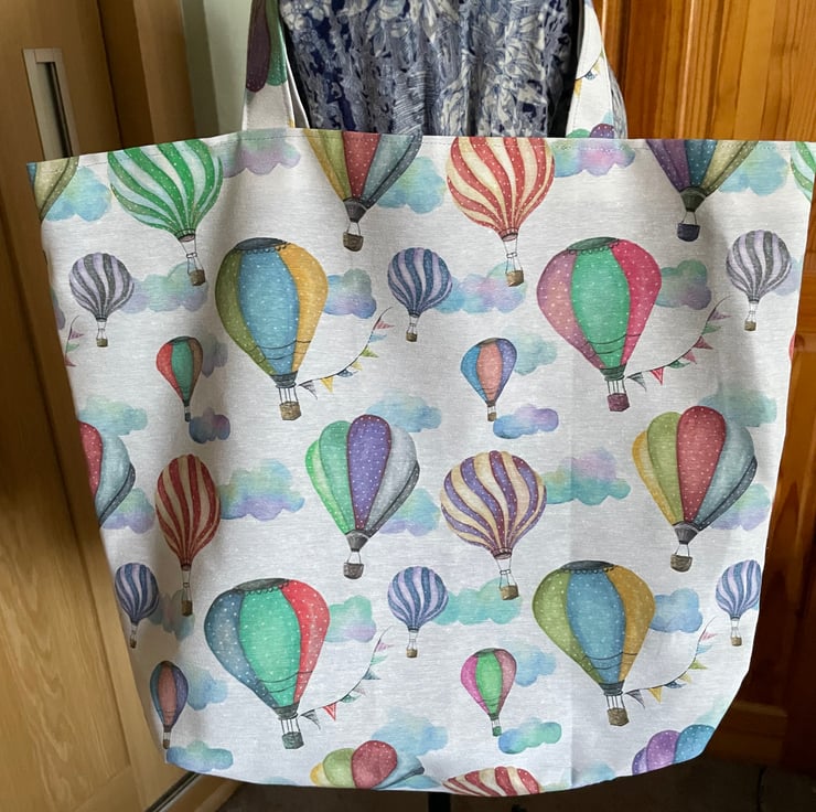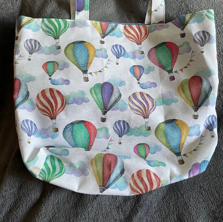 This gorgeous tote bag is made from cotton upholstery fabric and features hot air balloons.