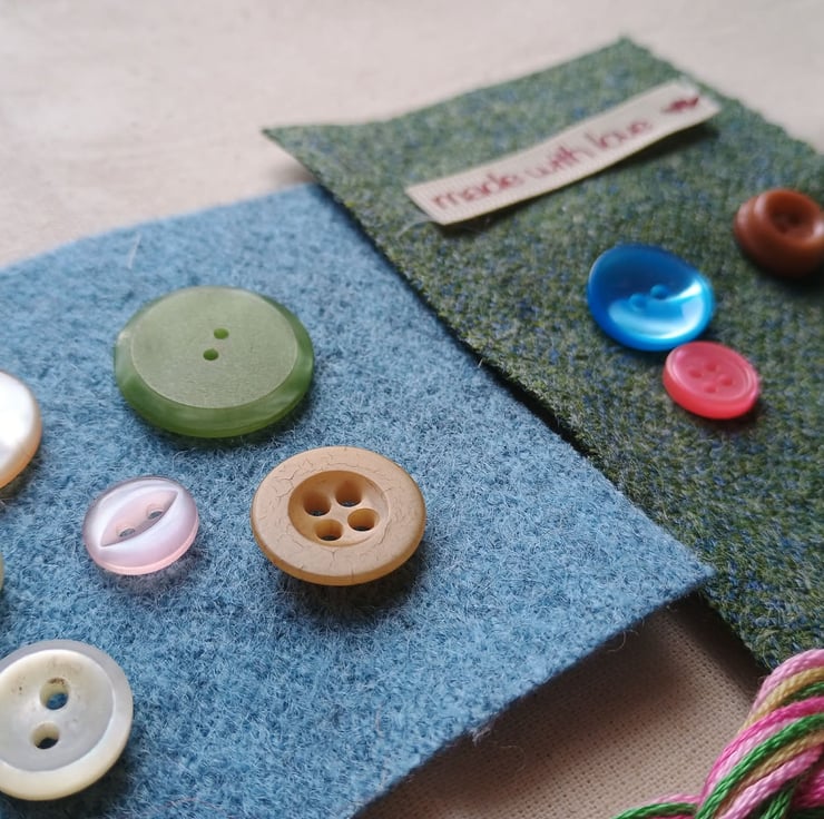 My collection started as a child with an old button box and some vintage embroidery threads given to me by my late grandmother. Over the years I have collected many vintage and retro items (note I only cut into pieces that are too damaged or marked to be used in their original form) as well as a whole sewing room full of bits and pieces.