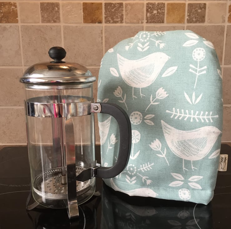 Your cafetiere will look gorgeous covered in this delightful bird fabric and you will always have beautiful warm coffee to boot! Will cover a standard sized cafetiere. Due to pattern placement, the cafetiere cosy you receive may not be exactly the same as the one picture.