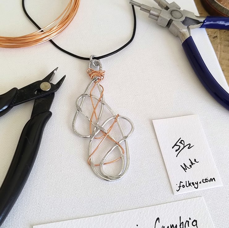 Abstract Mixed Metal Wire Pendant Handmade Hammered Aluminium & Copper Necklace