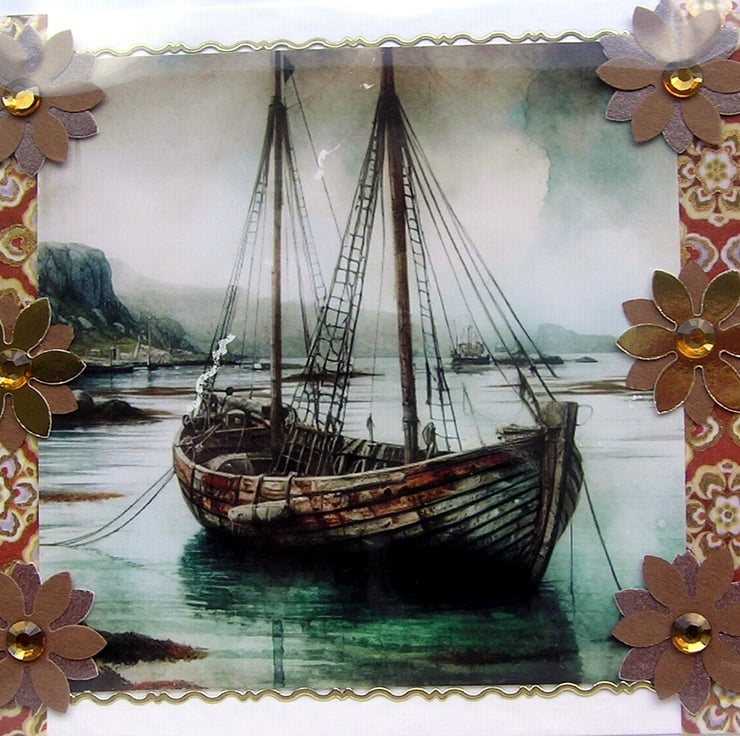 Beautiful Hand-Crafted Decoupage Card (100mm x 147mm - 5.75 x 4 inches)