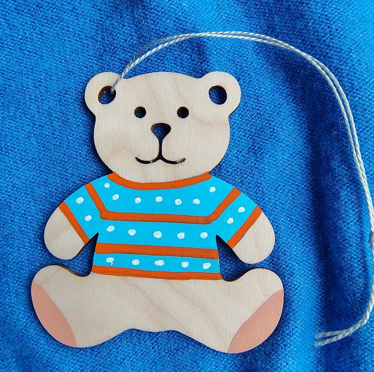 This set of four children's room, hanging decorations that bring a handcrafted, cosy feel to any nursery decor. A teddy bear in a striped sweater, a bunny with soft pink ears and a cute white tail, a happy green bird with polka dots and a spotted hedgehog full of whimsical charm. Easy to hang each comes with a thread of 100% cotton. A thoughtful gift for new parents and children's birthdays.