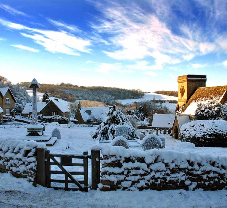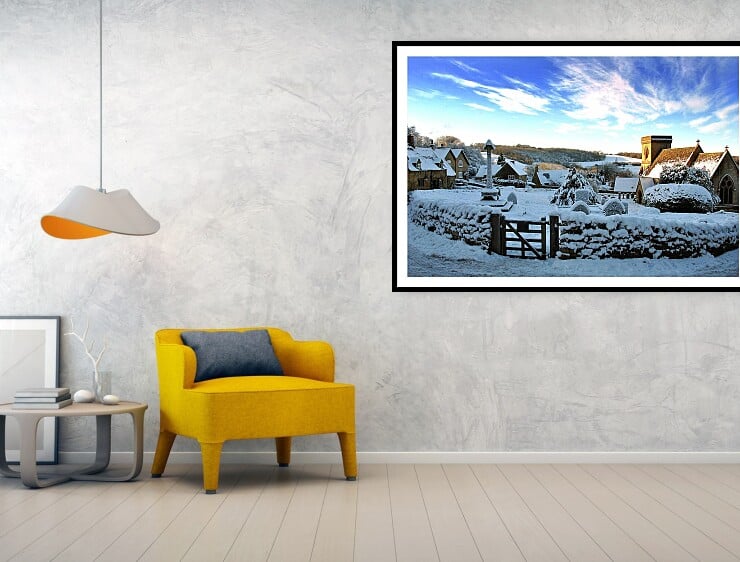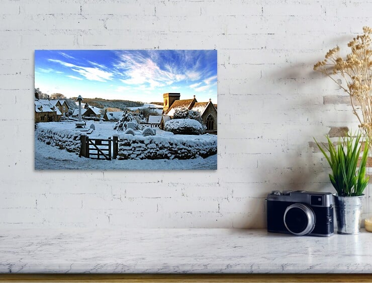 St Barnabas Church in the snow in Snowshill a village in the Cotswolds Gloucestershire England United Kingdom a photographic print photography by Andy Evans Photos