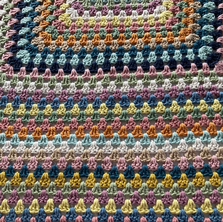 It is crocheted in a 40% cotton 60% linen mix yarn in pretty vintage-y colours from the Vintage Summer Meadow Blanket pattern by Amanda at EightbySix. This yarn has a lovely feel and also adds some weight to the blanket.