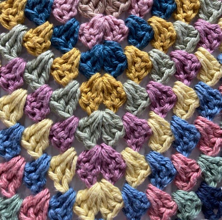 The inspiration for this fab blanket was the cotton/linen mix yarn….so pretty!