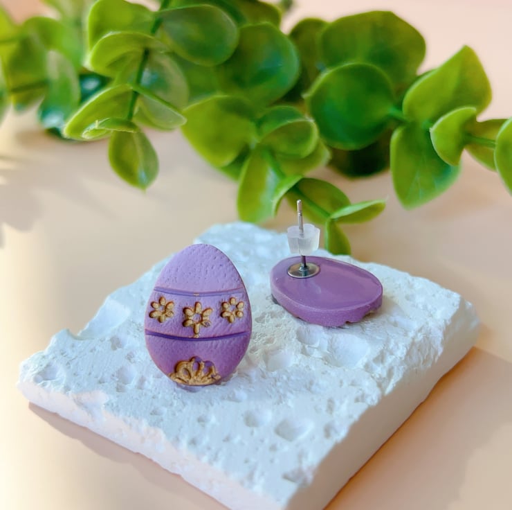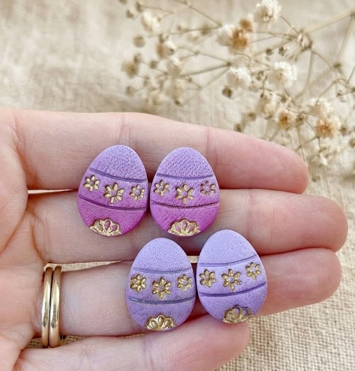 Celebrate spring with these handmade egg earrings. I’ve hand-sculpted every tiny flower in my home studio to create something truly special for your Easter outfit.