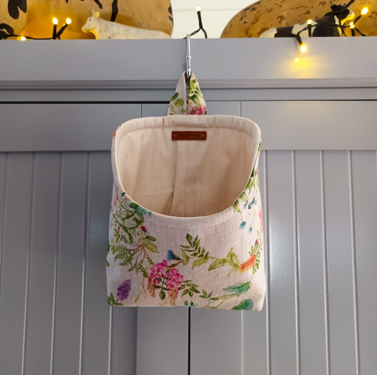 Handmade using beautifully printed fabric and padded with wadding for added structure and durability, this hanging pod is both functional and decorative.