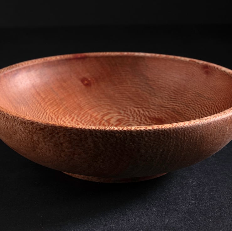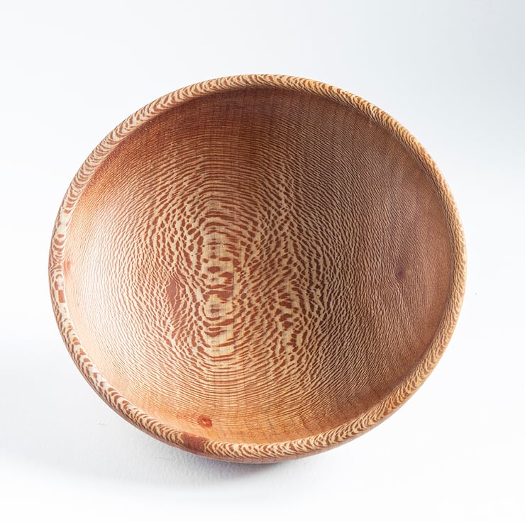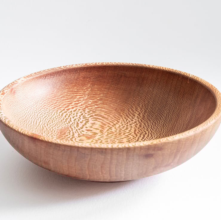 This bowl has been carefully handcrafted from lacewood, showcasing the wood's distinctive flecked figure and warm natural tones.