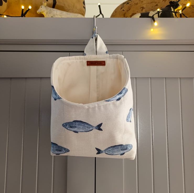 Handmade using beautifully printed fabric and padded with wadding for added structure and durability, this hanging pod is both functional and decorative.