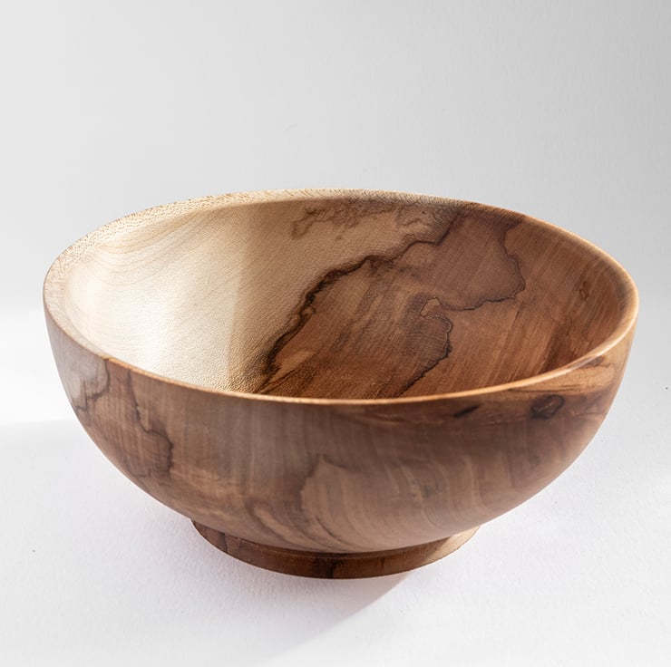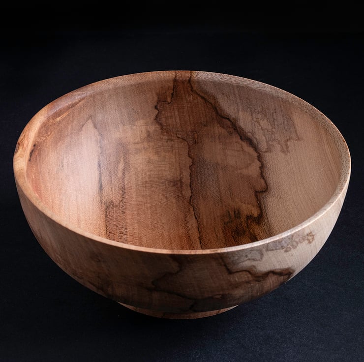 This spalted maple bowl is a masterclass in nature's artistry. Striking, ink-like zone lines across a creamy grain, creating a dramatic contrast. Hand-turned to a smooth finish, it's a piece that celebrates the beauty of natural decay transformed into fine art.