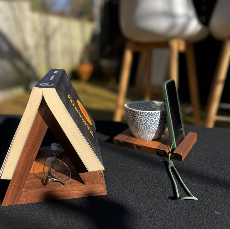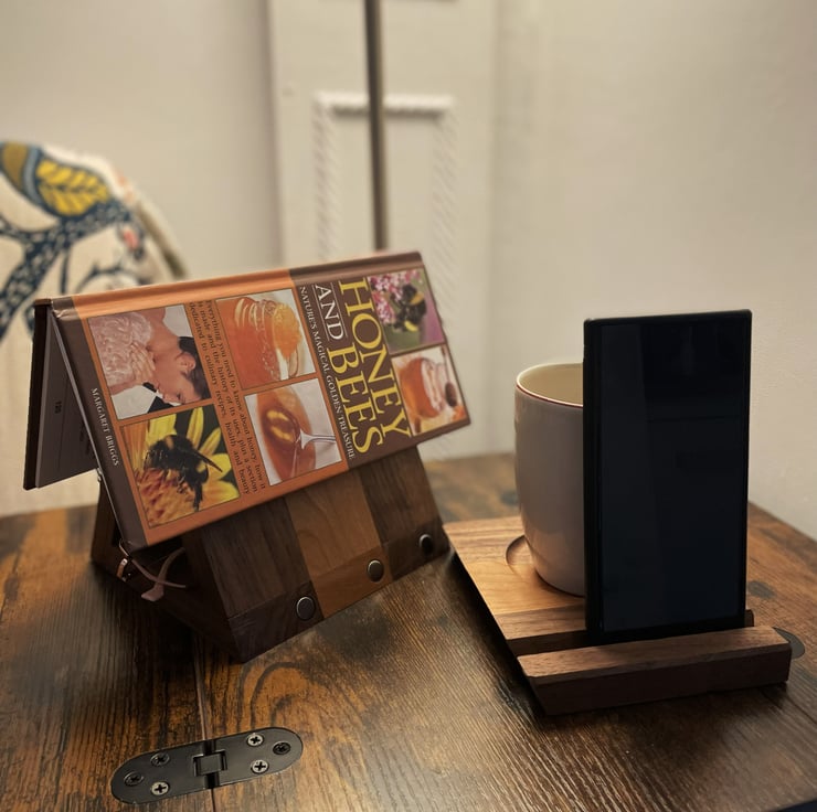 I wanted to create a stable and simple way to hold a book open without relying on lightweight or adjustable stands that move or collapse during use.