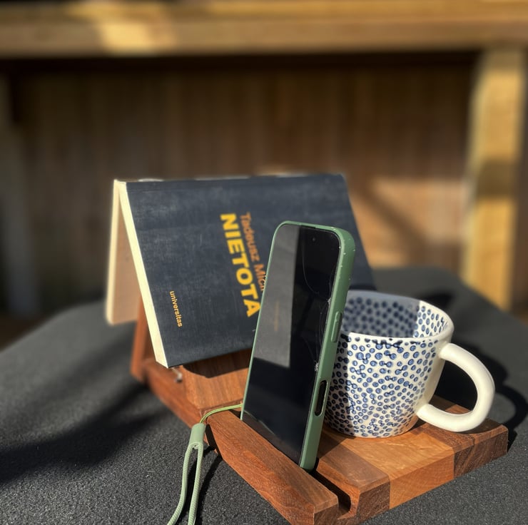 Designed as a calm and functional object, the stand holds books while bringing the warmth of natural hardwood to your desk, bedside table or living space.