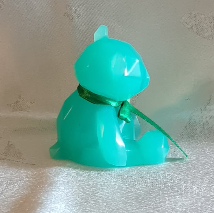 Resin Bear is approx 6.5cm high and has a small rabbit figurine fixed to it. This is a non-removable component and is fixed with a wire and glue.