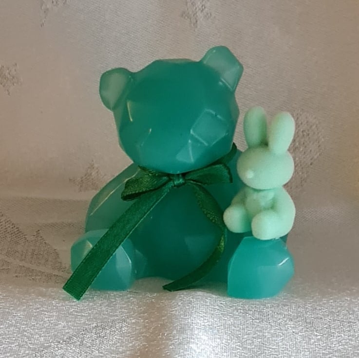A lovely pastel Green resin Bear figurine with Bunny companion. Gorgeous as an Easter gift or as a Springtime decoration.