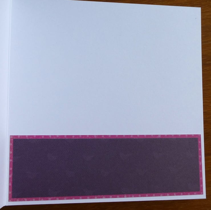 Inside the card a band of matching printed paper with a dotty pink border has been added down the right hand edge. A tag style message with the words With Love has been added, raised on foam pads and tied with a white organza ribbon.