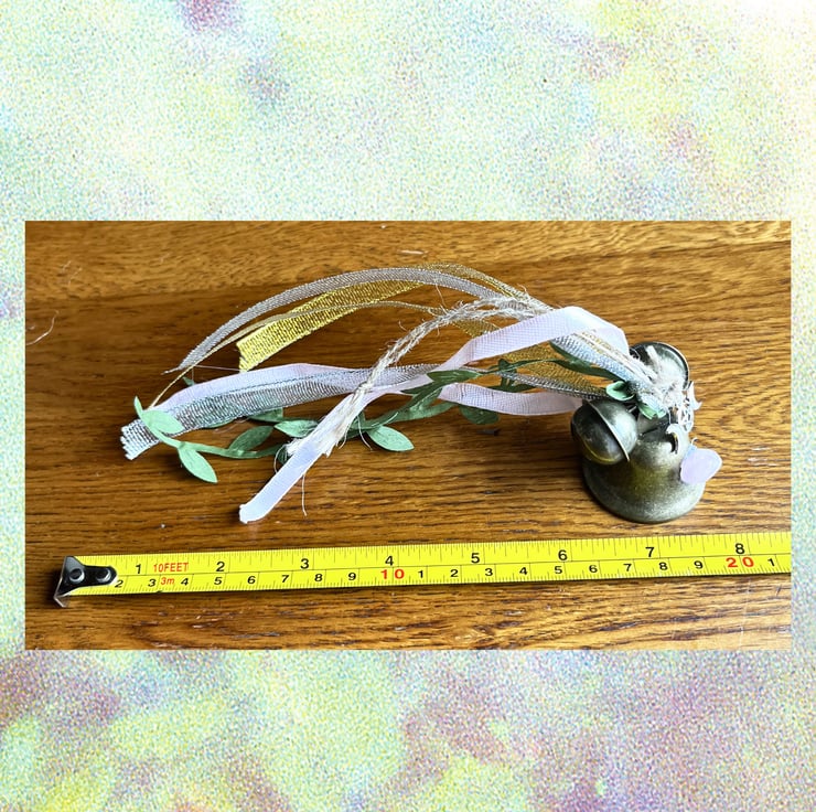Each bell i create has a genuine gemstone and a charm adorning it. Cascading coloured ribbons add a beautiful, flowing movement to the piece, catching the air and the light. The bell can be used as a stand alone piece or can be displayed using an attached piece of twine.