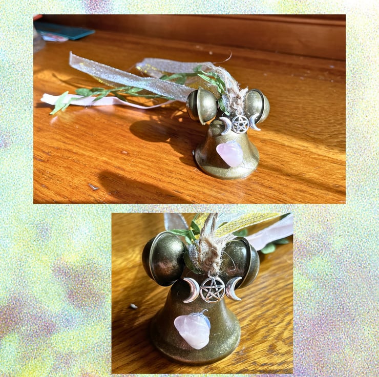 Altar Bell Chime Decor Decoration Wicca Pagan Cleansing Spell Ritual Rose Quartz