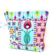 Handmade using 100% cotton fabrics from our Folk Tales collection (on Spoonflower) and two pink cotton fabrics. Front is patchwork and back plain pink cotton and includes a Handmade label.