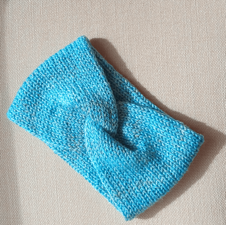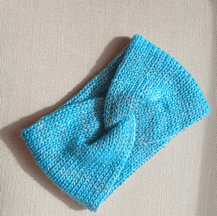Composition: The headband is knitted in the round and then joined into a circle with a twist at the front.