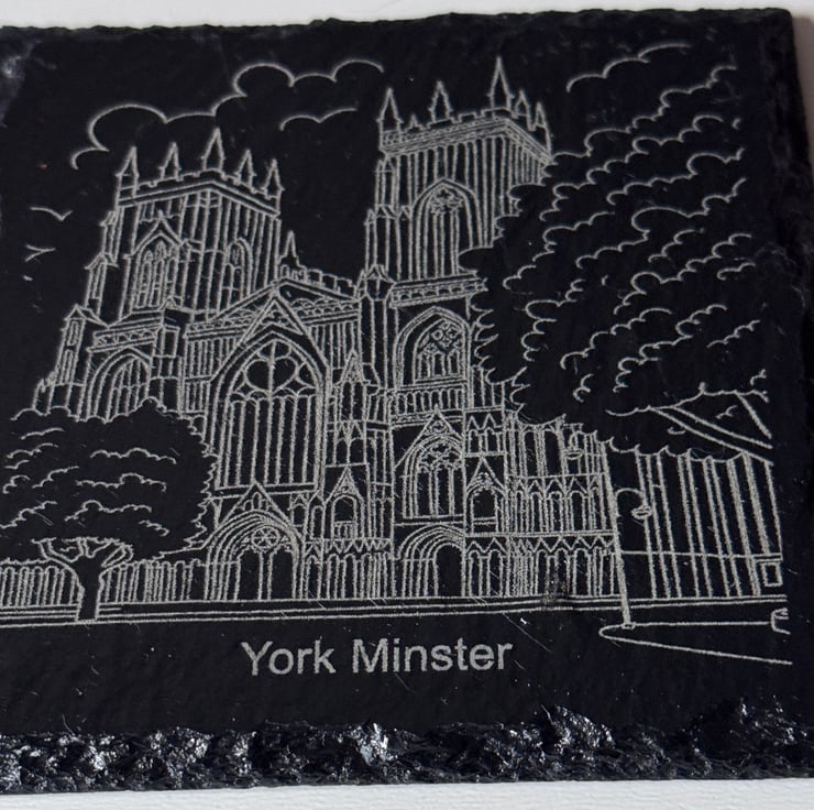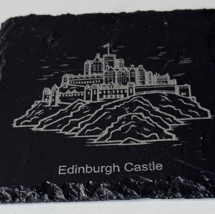 Each 100mm x 100mm coaster is precision-engraved to highlight the fine details of these historic locations, creating a striking contrast against the natural dark slate. The hand-cut edges give every piece a unique, rustic finish, making them perfect for gifts, souvenirs, or home décor.