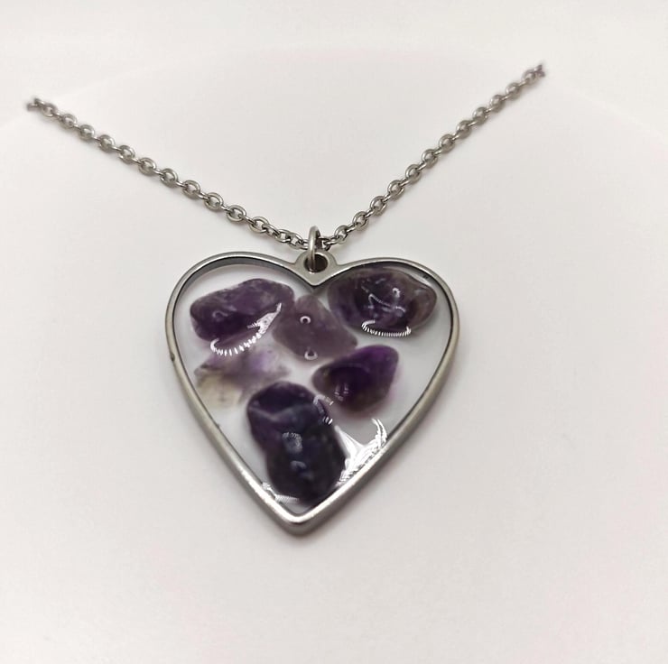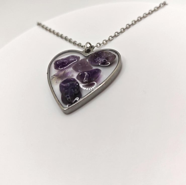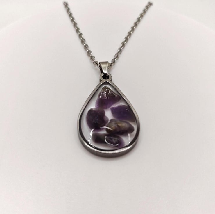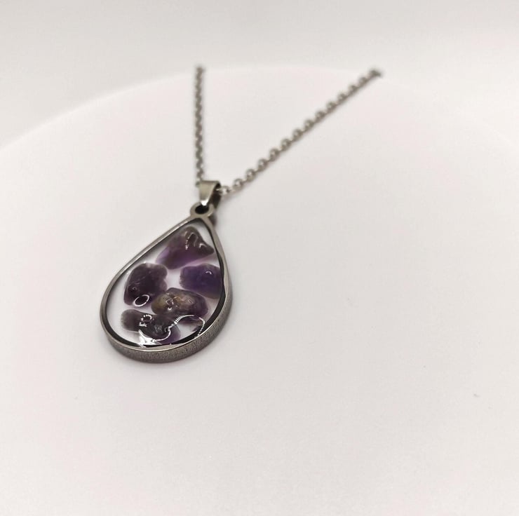 Handmade Amethyst resin necklace.