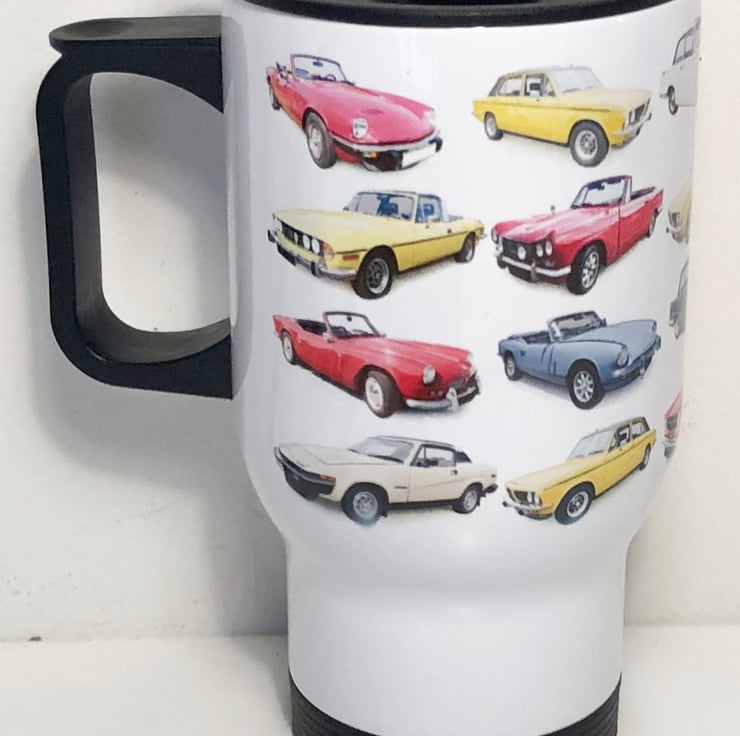 MUG - 14 fluid oz Stainless Steel Travel Mug (155mm high, 80mm diameter not including handle) suitable for most vehicle cup holders. If choosing the Four Mug Option they do NOT all need to be the same, the other Three can be of any other subjects from my range.