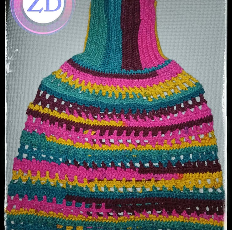Handmade crocheted hooded shawl with multiple ways to wear.