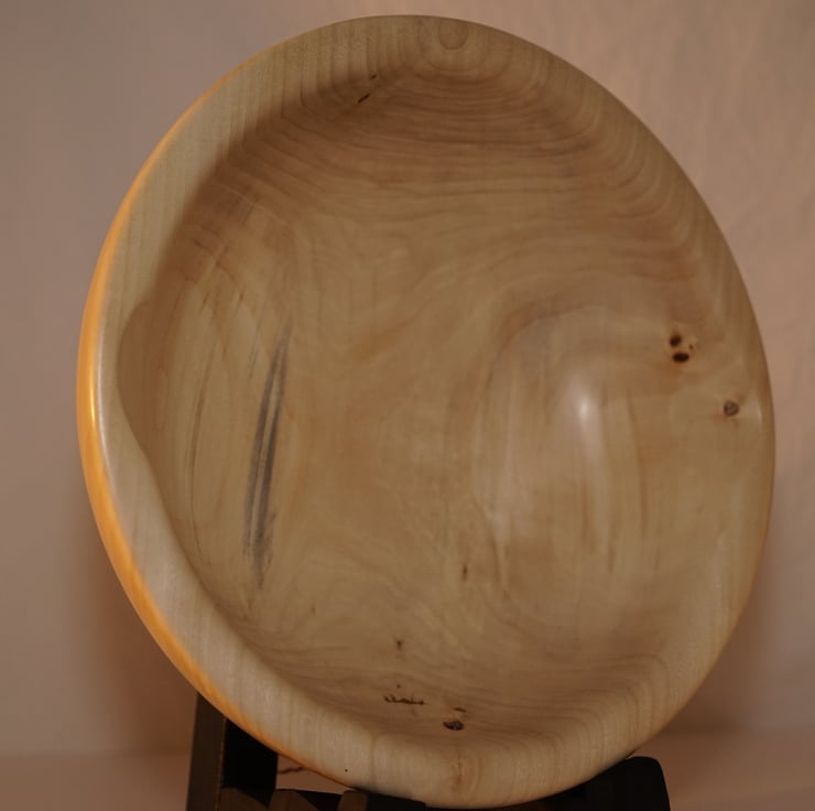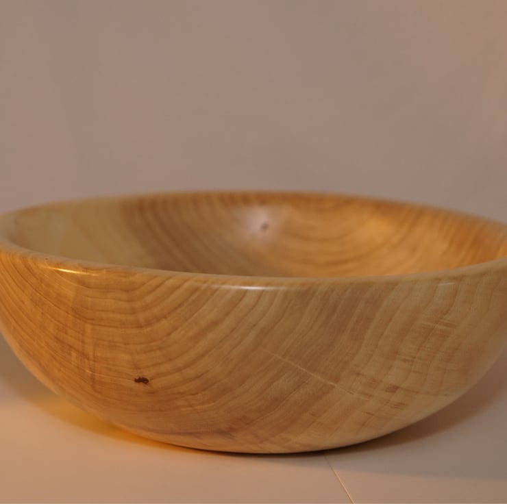 This piece is from a large storm-felled black poplar tree. It is a sandy cream with streaks of grey and green. The bowl was twice-turned on a wood lathe and then the grooves have been hand carved into it. Although, the bowl was designed to be used as a salad bowl it would also make a great fruit bowl or even a bread proving bowl!