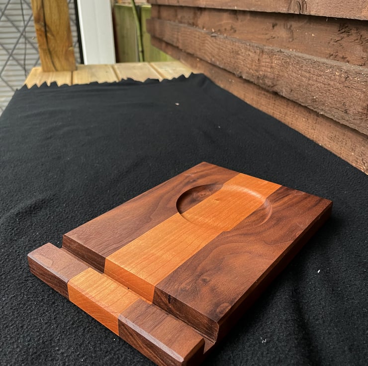 Handcrafted stand made from solid American walnut and American cherry.