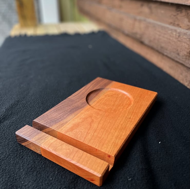 Handcrafted stand made from solid American walnut and American cherry.