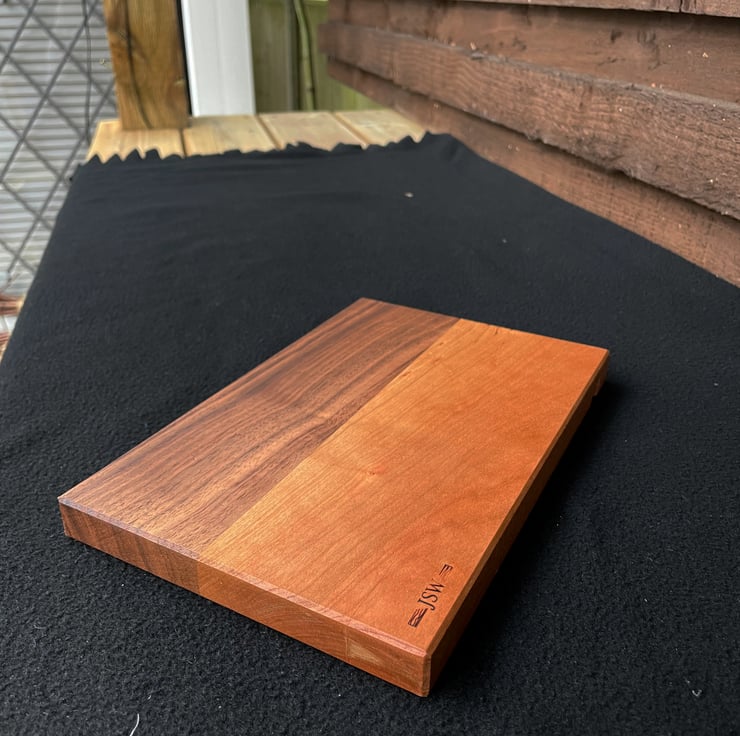 The piece combines walnut and cherry to create a balanced contrast between the two hardwoods.