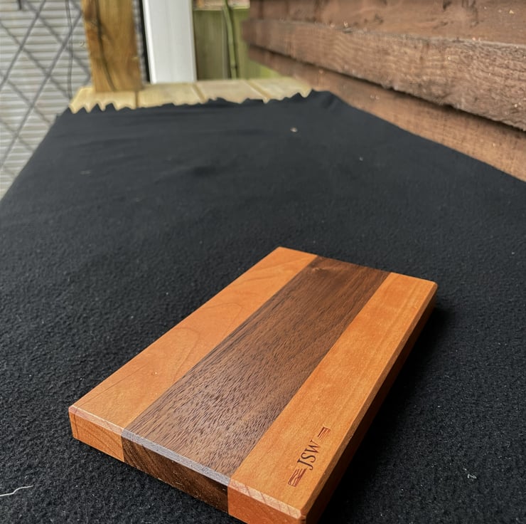 Handcrafted tray made from solid American cherry and American walnut.