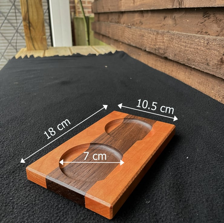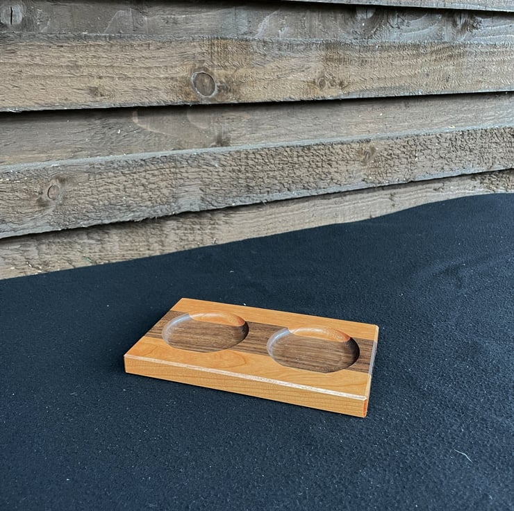 The use of hardwood allows the tray to sit naturally on a table or worktop while adding warmth and material presence.
