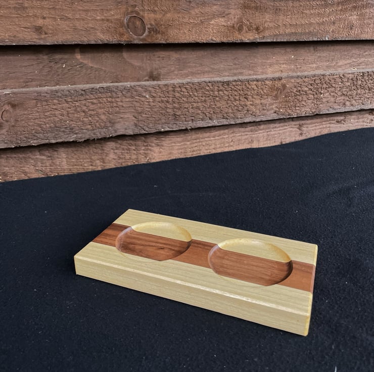 The use of hardwood allows the tray to sit naturally on a table or worktop while adding warmth and material presence.