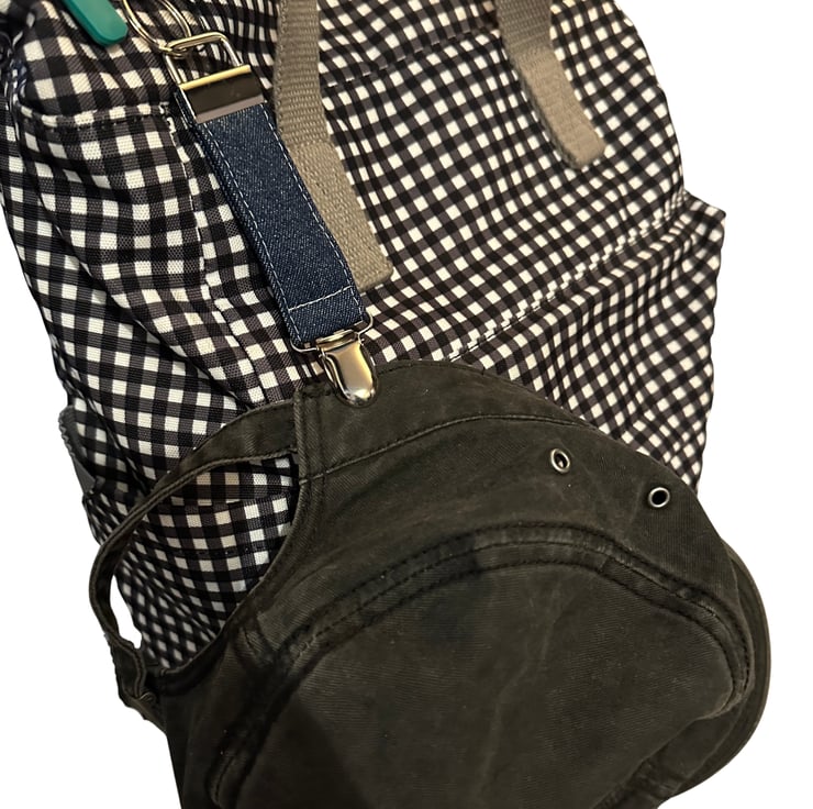 The denim strapping is doubled, the loop would accommodate a scarf in addition to a hat, even a golf glove or cloth.