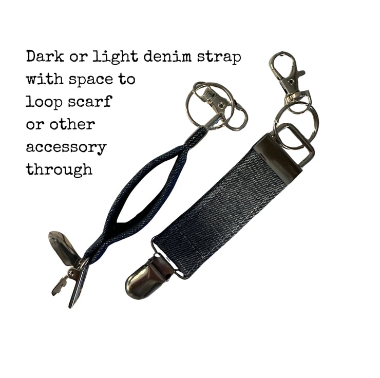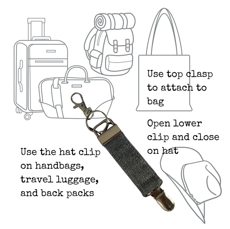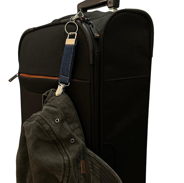 Hat Clip Travel Accessory in two choices of classic denim, dark or light (reverse)