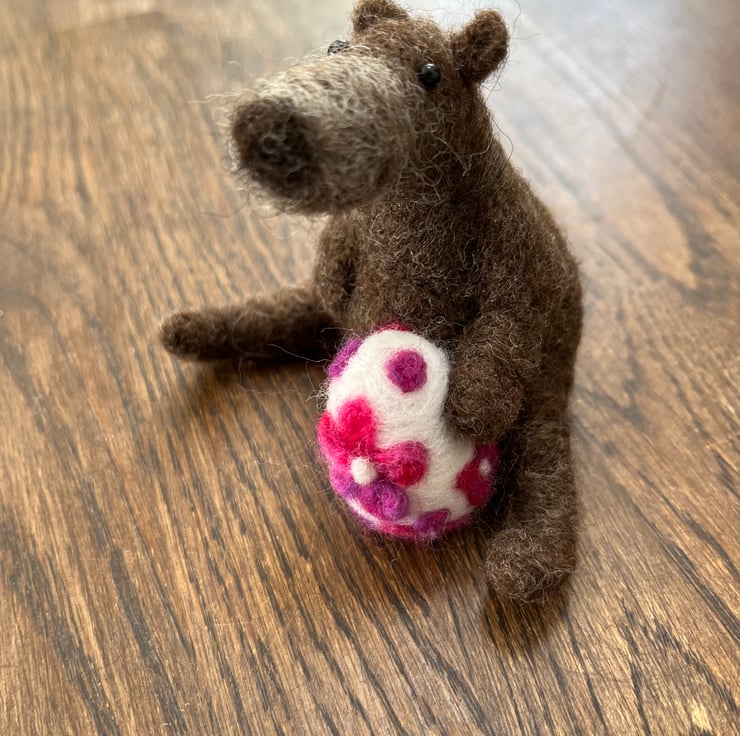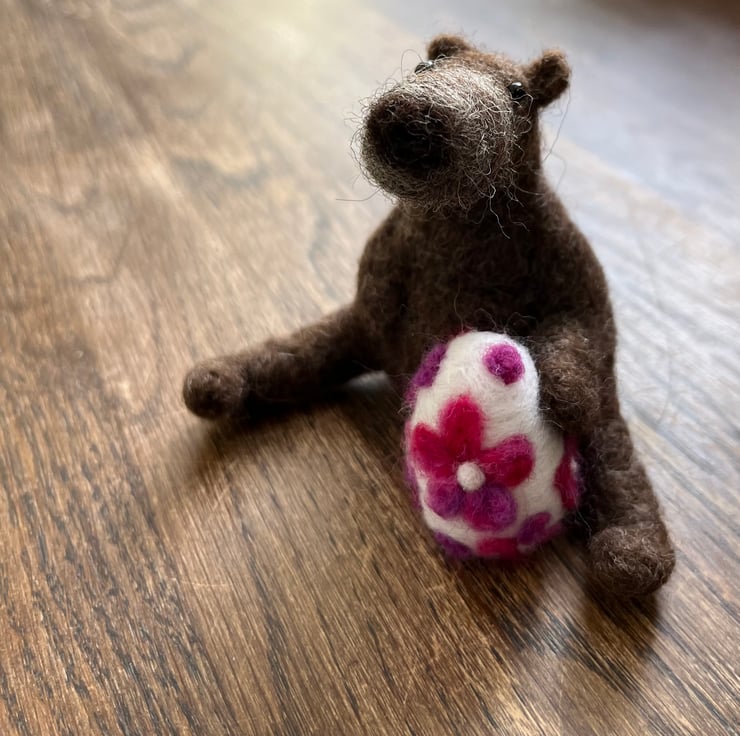 This is a beautiful needle felted bear with needle felted Easter egg. Perfect as an Easter gift for this who enjoy an alternative to chocolate or an addition to it!