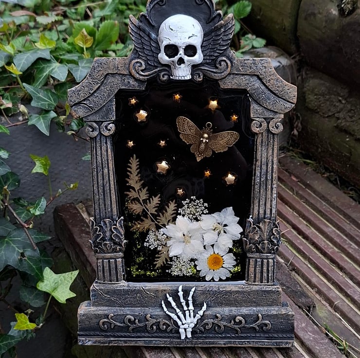 Each piece is created using an upcycled photo frame and designed with a dark, botanical aesthetic-perfect for lovers of gothic, witchy, and alternative décor. No two are ever the same, making each frame completely unique.