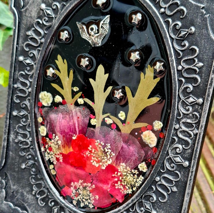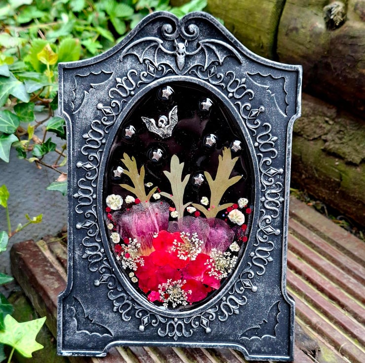 Gothic Alternative Bat Spooky Photo Frame Botanical Floral Resin Glitter Emo