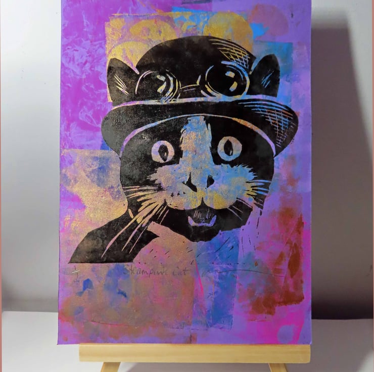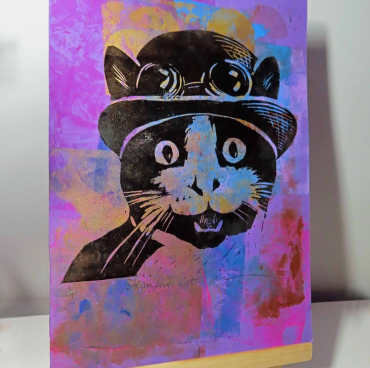 This is a very dapper cat in his Steampunk bowler hat and goggles!