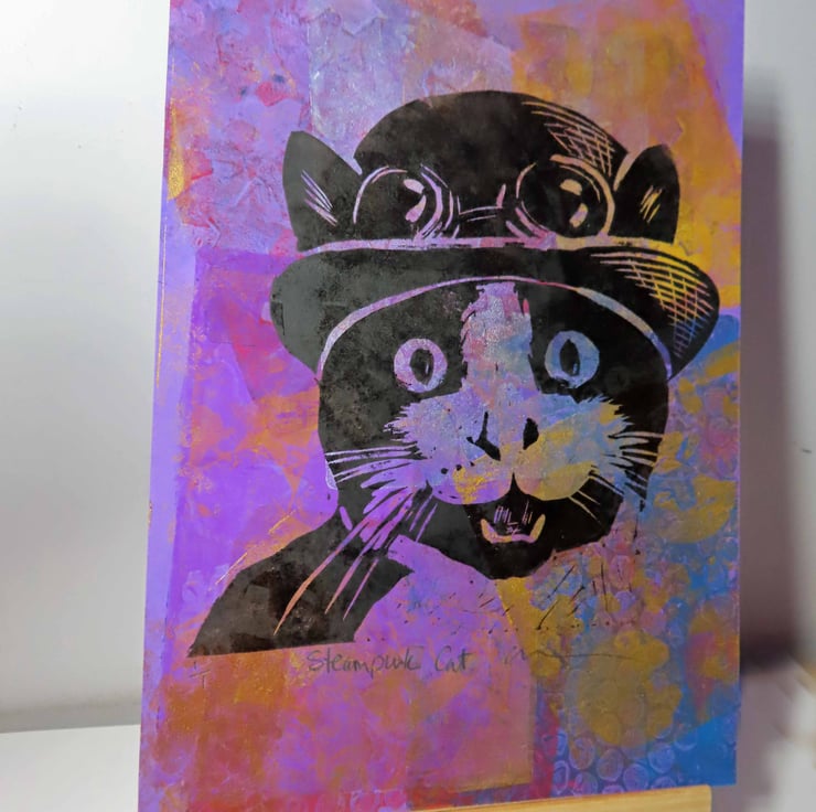This is a very dapper cat in his Steampunk bowler hat and goggles!
