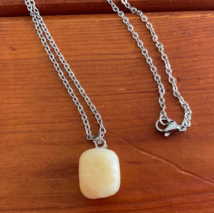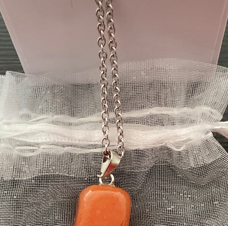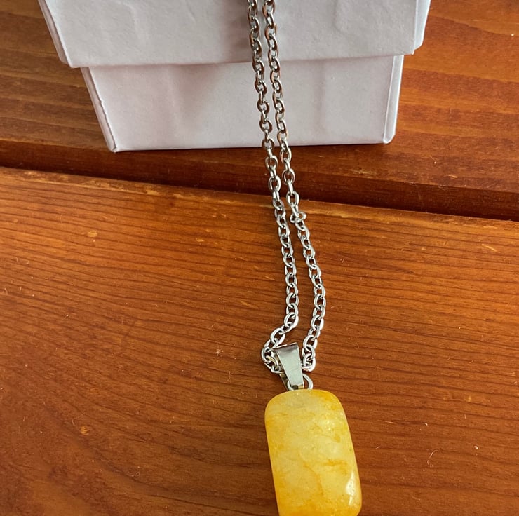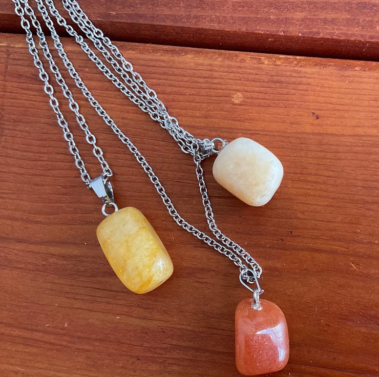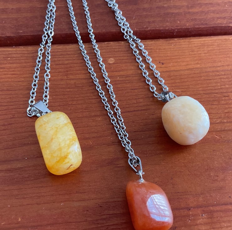 1 cabochon gemstone necklace, in a choice of 3 styles. Citrine and red jasper. They come complete with a stainless steel chain, of approximately of 18 inches in length.