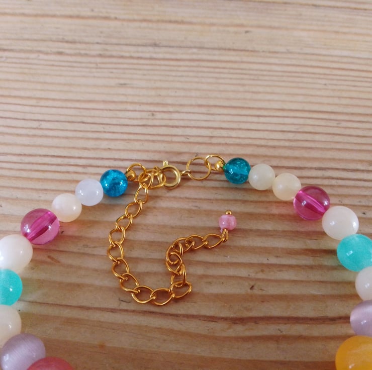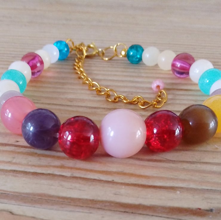 This handmade bracelet is made from a colourful combination of resin beads. The vibrant colours make this a fabulous addition to any jewellery collection.