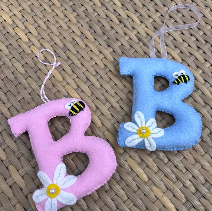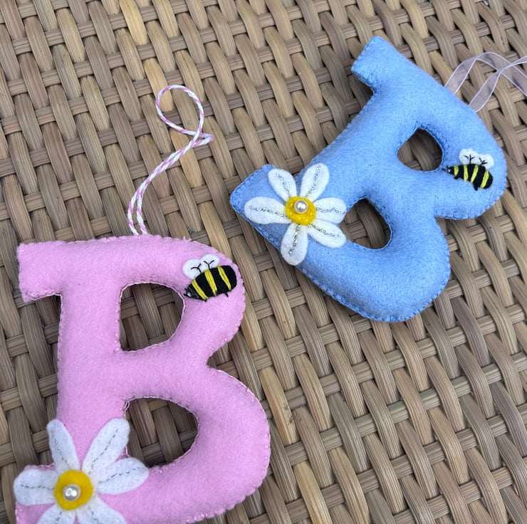 A beautiful hand cut and hand sewn padded felt letter with bee and daisy embellishment approx 11 cms tall
