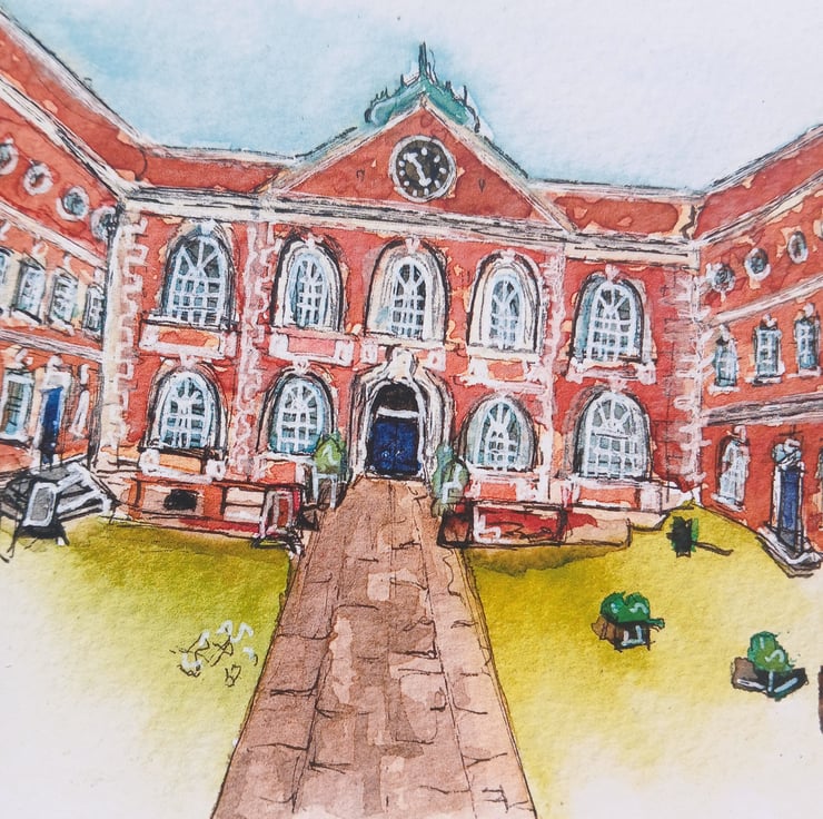 A print of my watercolour of the Bluecoat gallery in Central Liverpool.