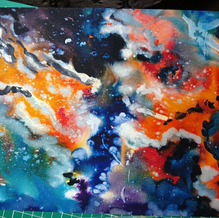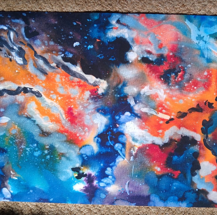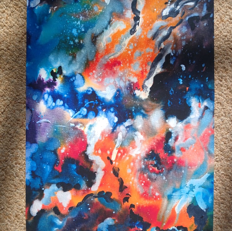 A print of my abstract watercolour painting inspired by images from the hubble telescope.