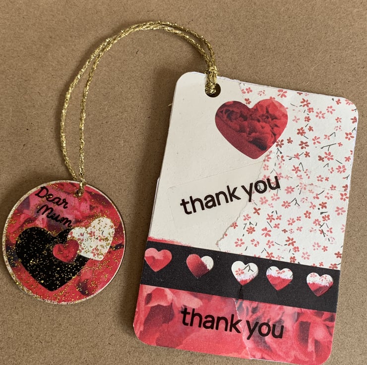 A handmade double sided bookmark with the words Thank You and Dear Mum on it.