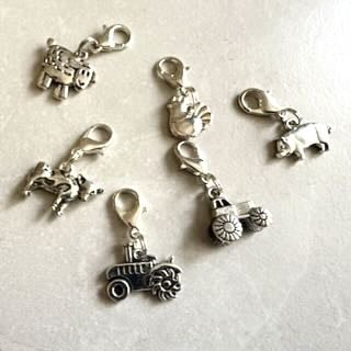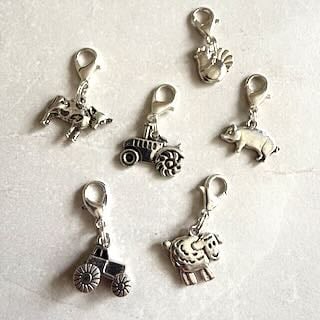Charms: Cow, truck, tractor, sheep, chicken and pig