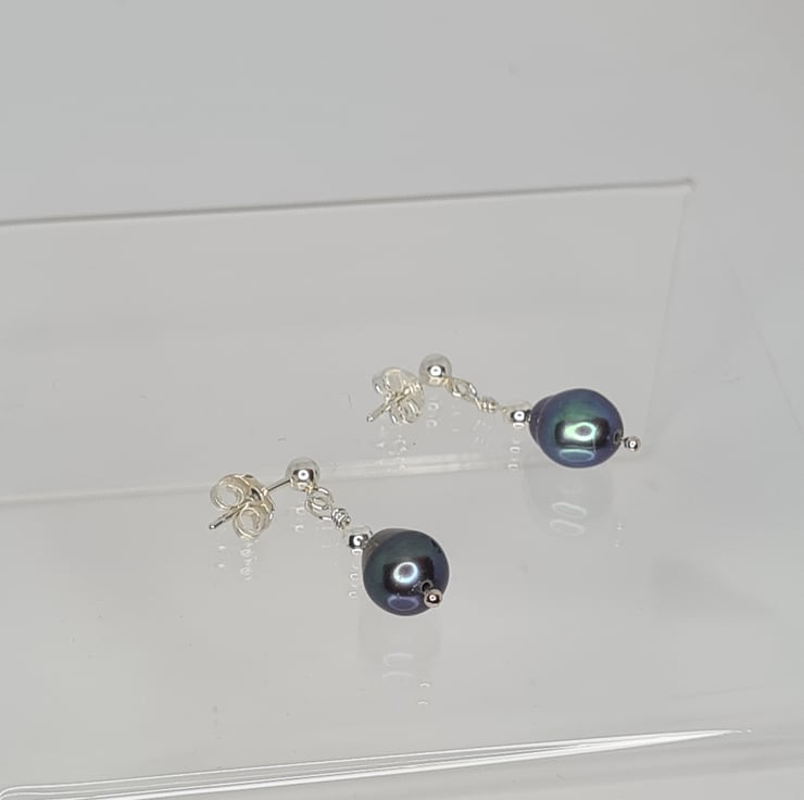 Handmade Sterling Silver Earrings, Blue Freshwater Pearl, Stud Earrings, Dangle Earrings, Anniversary Gift, Birthday Gift, Gift For Her.