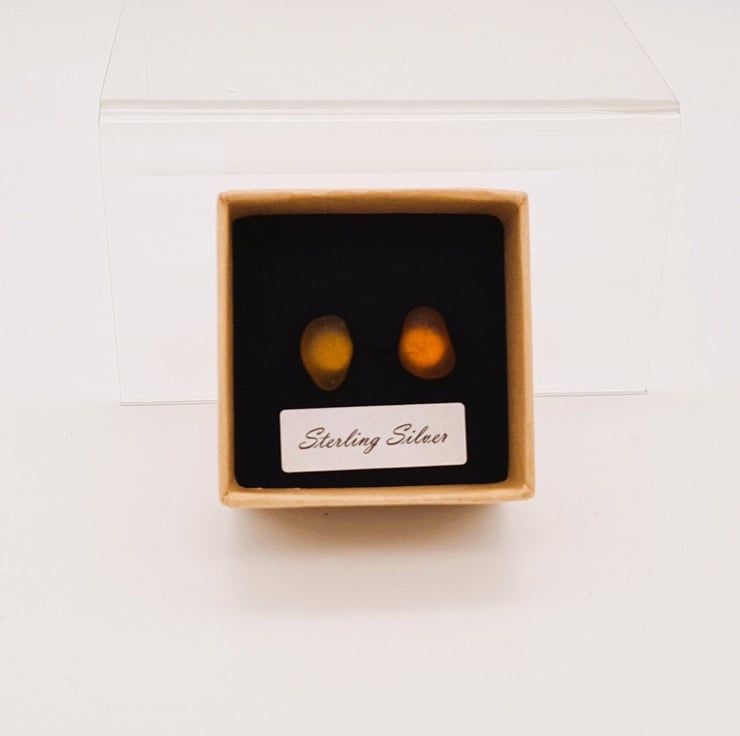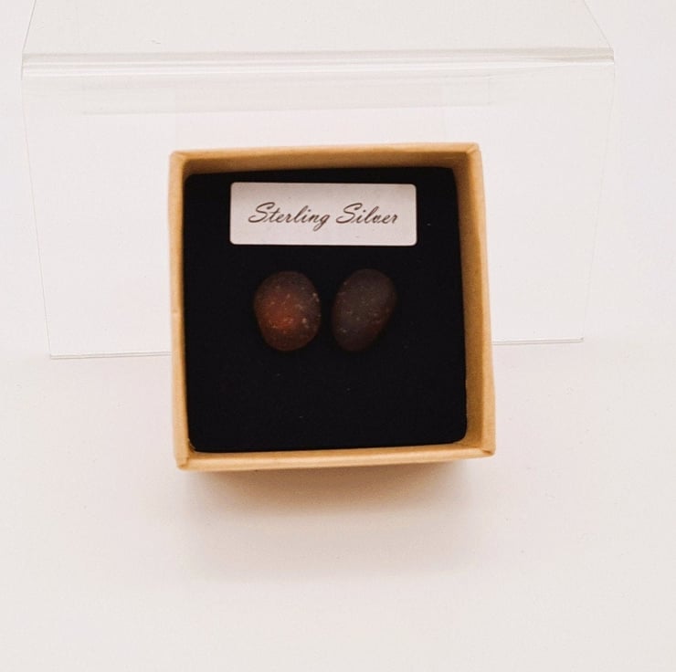 A Pair Of Dark Brown Sea Glass Stud Earrings. Sterling Silver Posts And Butterfly Backs. Gift Boxed.